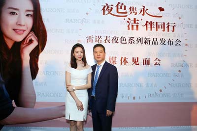 董洁老师与雷诺表总经理詹江洲先生接受媒体采访,并合影留念。