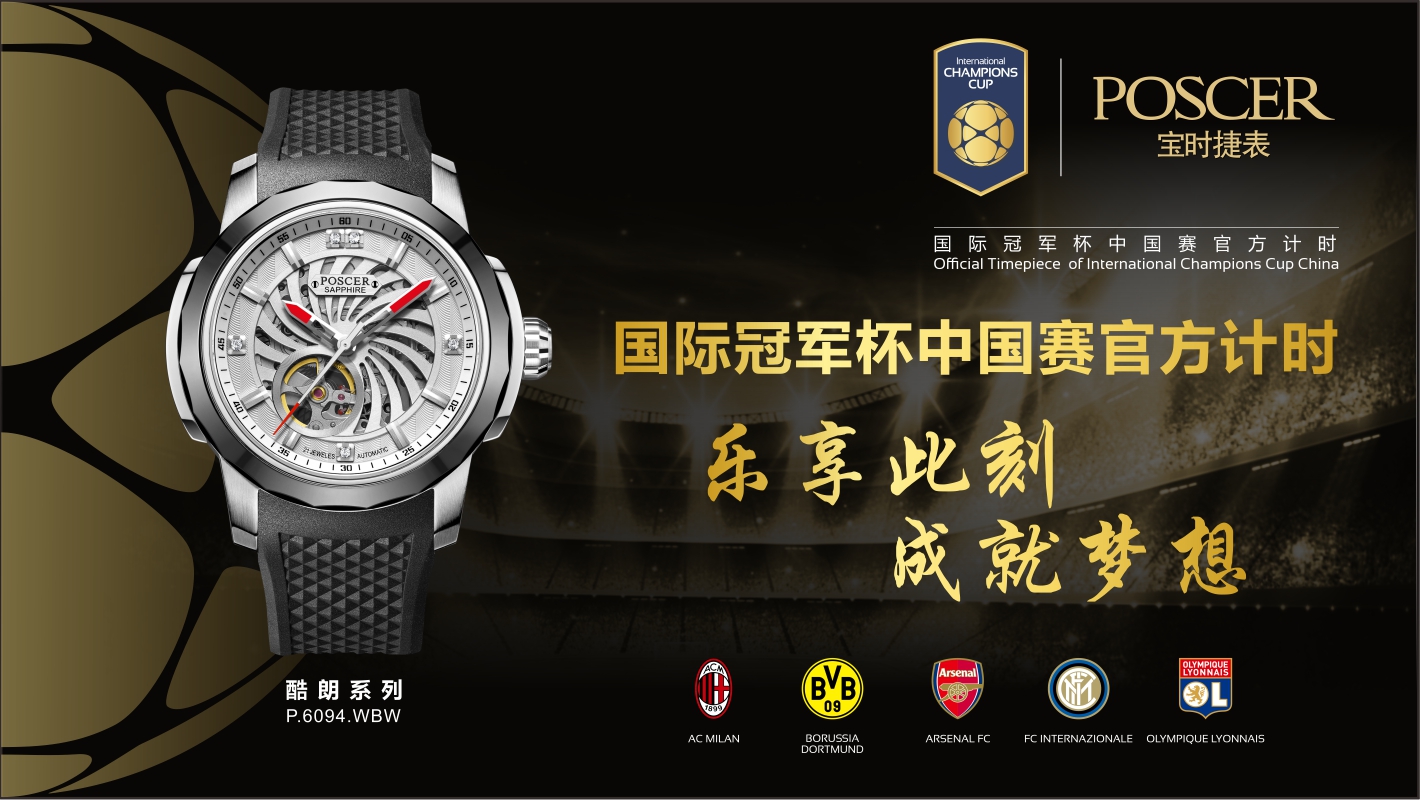 本次为宝时捷表与国际冠军杯中国赛的首次合作。宝时捷表以与足球运动的热血活力精神完美契合的运动休闲风品牌腕表—酷朗系列腕表为本次赛事提供专业计时。酷朗系列男表,举手投足之间焕发酷炫帅气、阳光洒脱,流露出男士爱运动爱时尚的青春活力。赛场上,球员们热血开踢,快乐进击,拼搏到底,享受此刻的活力挥洒,追逐光荣与梦想,见证热血青春的激情碰撞,诠释出“乐享此刻,成就梦想”。相信与宝时捷表的合作会让更多足球球迷们最真切地感受到这一精彩盛事的激昂活力!