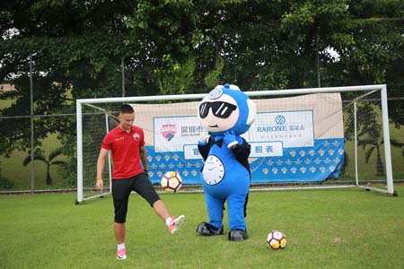 会后,双方嘉宾移步至足球场观看深足球员驰骋球场的飒爽风姿,一睹球员训练风采。雷诺表品牌IP雷小诺也出现在球场,与球员们踢球互动。戏精雷小诺奔跑在球场上,三招两式,踢球翻身现场就引来热情围观。