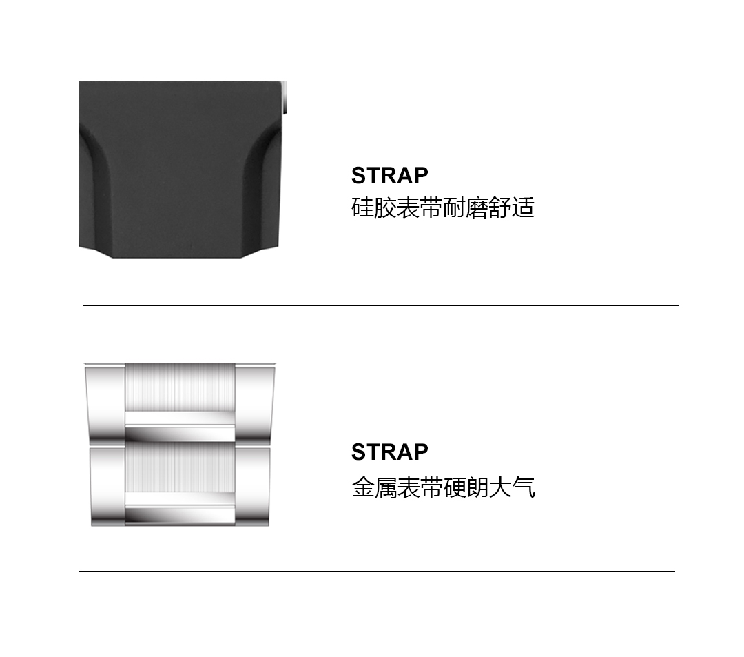 此款腕表还有橄榄绿、纯净白、浓墨黑三款,以饱和度高的缤纷色彩打造更高级的时尚感,勾勒出或活力、或纯澈、或神秘的魅力形象。表带分为银色金属表带与黑色硅胶表带,金属表带硬朗大气,硅胶表带耐磨舒适,两种风格任你Pick。