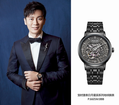 盛典上的李晨西装革履,帅气逼人,领口的暗色领结与胸前的精致胸针无不散发着成熟男人的优雅与魅力,腕间佩戴的宝时捷表日月星辰系列地球腕表无声传达李晨内心勇敢、阳刚的一面。