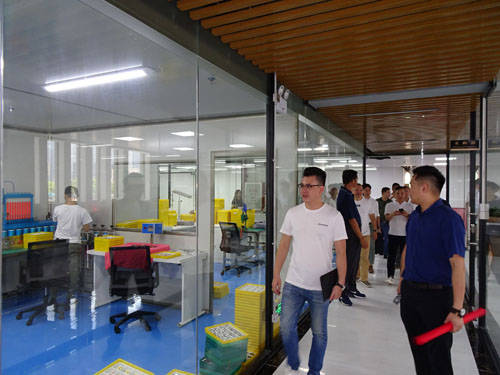 在陈仕标董事长的陪同下,大家一同参观了进驻工业园的部分企业,包括宾利表业、龙波表业、美格尔表业等钟表企业以及广东汉邦激光科技等高新技术企业。