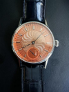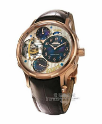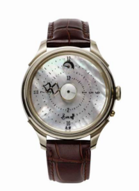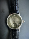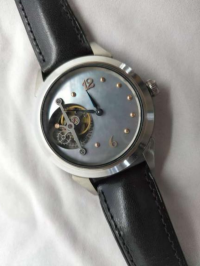 “彩虹”系列手表之二 型号:“彩虹”系列手表之二 机芯:TZH-rainbow604.overturn 直径:36.8mm 功能:手动上链,动力储备56小时,机芯翻转设计 表壳:不锈钢材质,直径42mm,厚度12.5mm 表带:鳄鱼皮表带 价格:126,000 CNY定制周期:6个月 |