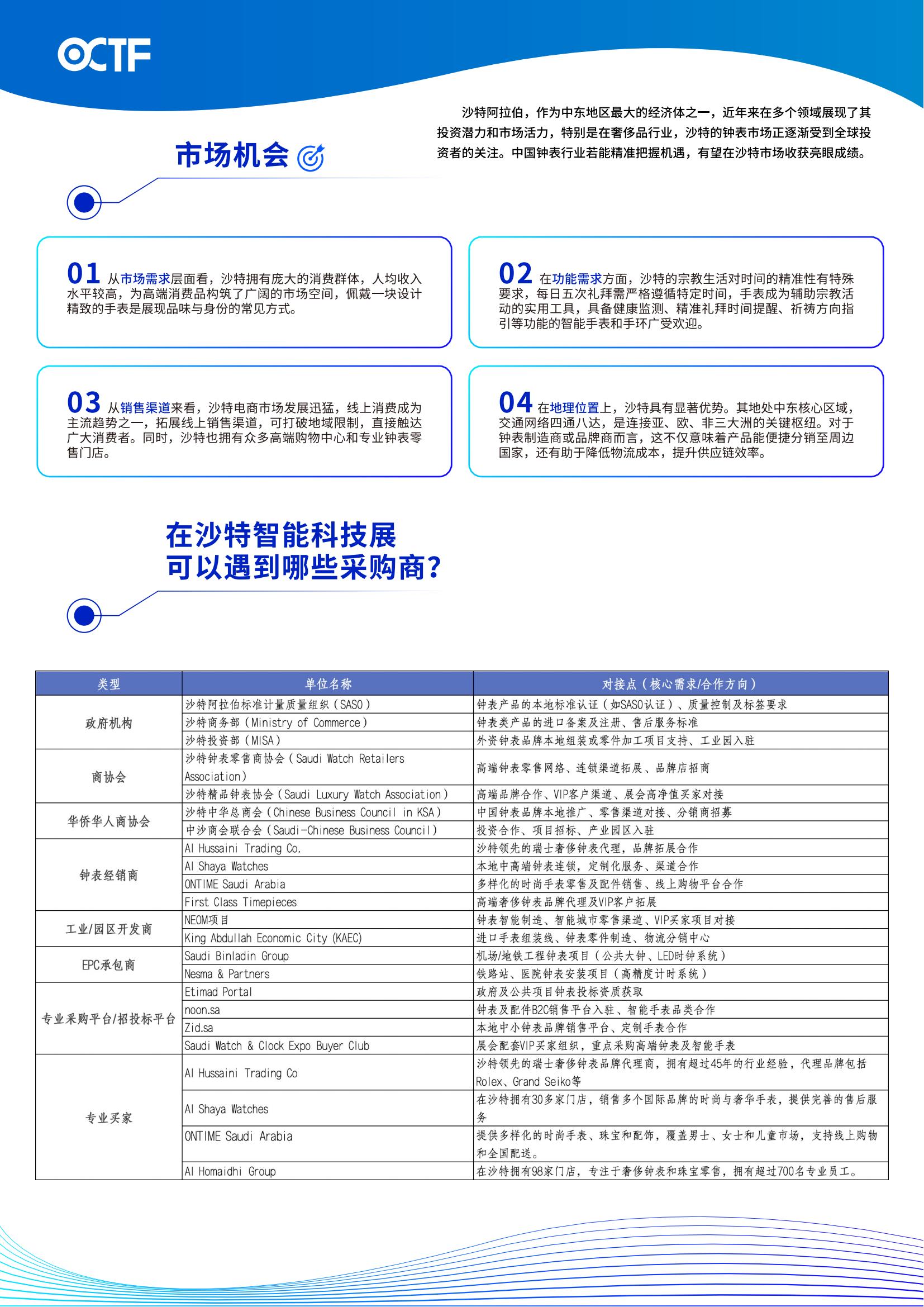 专业买家精准对接:专业买家有Al Hussaini Trading Co, Al Shaya Watches, ONTIME Saudi Arabia, Al Homaidhi Group等;以及专业采购平台、招投标平台。