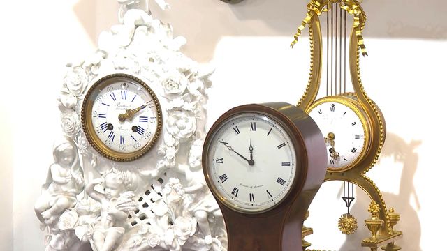 魏广文的非遗馆,还展示来自法国、英国等国家的钟。