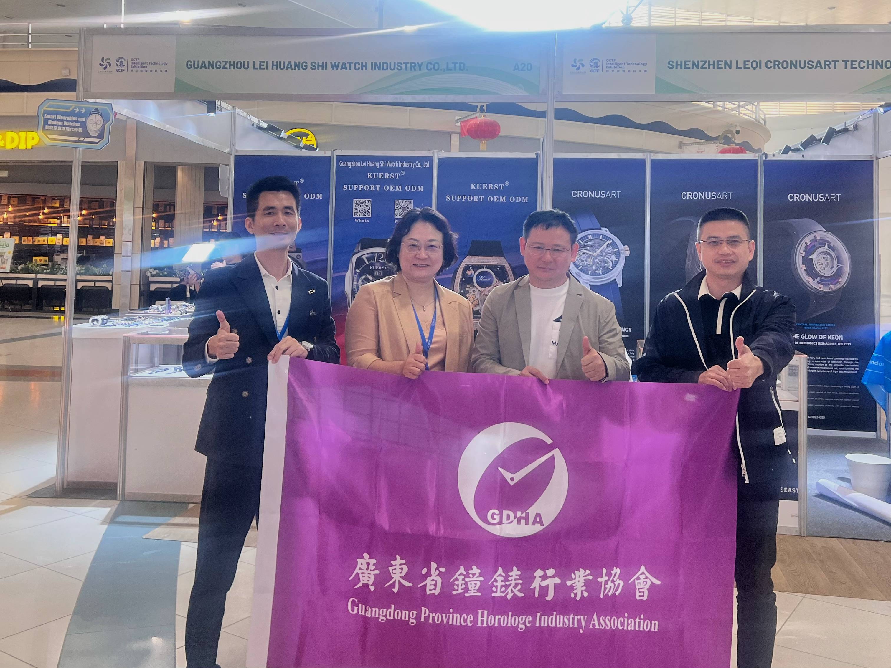 【本会讯】广东省钟表行业协会于2025年11月17日至23日组织会员企业参加在沙特利雅得举办的首届开放钟表展,并开展市场考察活动。本次代表团由协会执行会长黄穗葵带队,多家广东钟表企业组团参展。