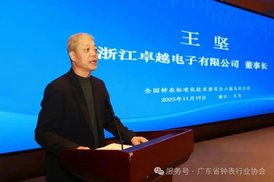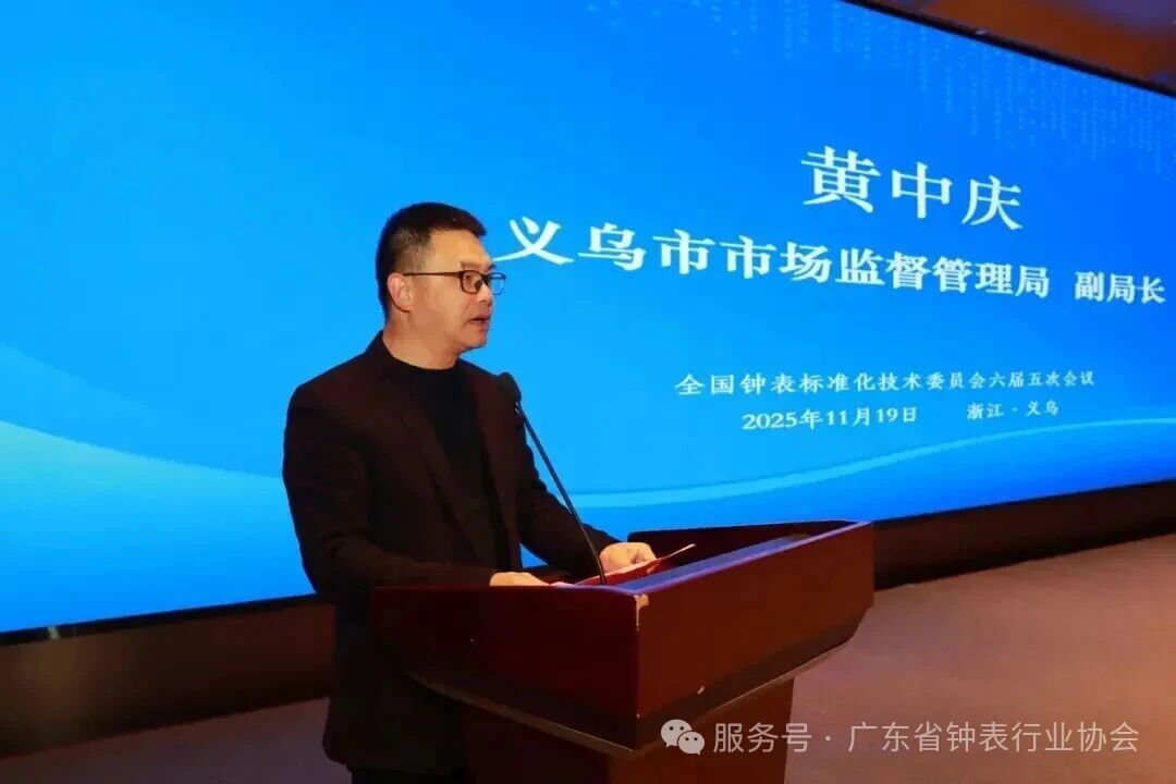 2025年11月18日至20日,全国钟表标准化技术委员会(SAC/TC 160)六届五次会议在义乌市顺利召开。会议由全国钟表标准化技术委员会主办,义乌市标准化研究院、浙江卓越电子有限公司和西安轻工业钟表研究所有限公司共同协办。全国钟表标准化技术委员会主任委员、中国钟表协会理事长张宏光,义乌市市场监督管理局副局长黄中庆,义乌市市场监督管理局标准计量与科技评管科科长王瑜,义乌市标准化研究院院长周江,西安轻工业钟表研究所有限公司党委书记、总经理张晔,广州市钟表行业商会会长林慧琼,义乌市钟表行业协会会长刘效成,浙江卓越电子有限公司董事长王坚等领导和嘉宾出席了本次大会。来自钟表行业企业、大专院校、检测机构和科研院所等80余家单位近100名委员、观察员、标准起草单位代表参加了会议。会议由全国钟表标准化技术委员会秘书长陈斌主持。