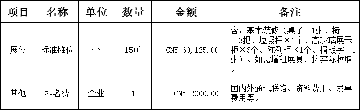 1、展台费用(注:如遇美金汇率大幅变动,协会有权调整人民币报价)