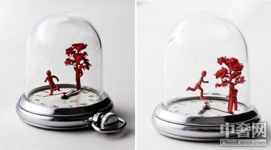 艺术家通过这些场景尝试为我们讲述在每个片刻时光背后稀松平常却又引人入胜的故事,看着指针上移动的人物模型,听着嘀达嘀达的时间声响,我想你也会愿意沉醉于如此迷人和美丽的时间,在片刻时光中停下来发发呆,或试着去想像发生在他们身上的小故事。