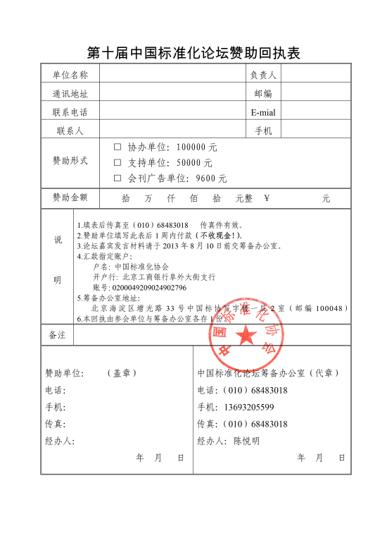 首页 >> 会员园地 >> 关于举办第十届中国标准化论坛的通知